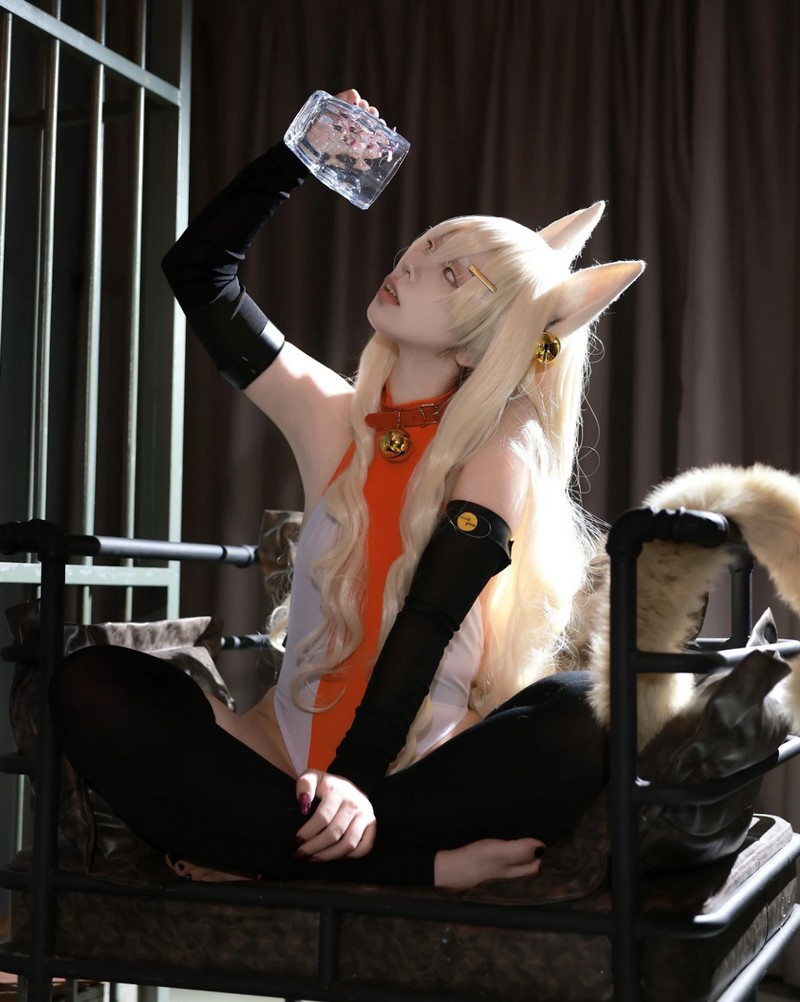 特长:軍事擬人角色神態還原、冷峻系妝造設計(擅長用深棕色眼線與啞光唇釉營造颯爽感)、軍事場景把控,通過握槍姿勢、挺直站姿等小動作強化「鐵血氣場」,作品被評為「最有戰場沉浸感的軍事 cos」。