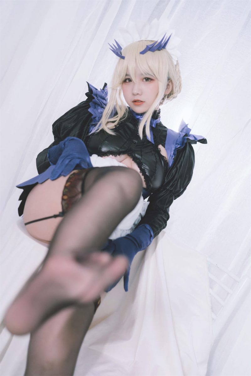 動作和場景也滿是巧思!阿半今天很开心站在工業風的廢棄廠房裡,腳下墊了一塊生鏽的金屬板,一隻腳微微踮起,身體側轉,右手握著黑槍抬到胸前,槍口輕輕向下——不是張揚的攻擊姿態,反而像戰鬥間隙的警惕狀態,據說這個動作還是參考了黑槍呆在遊戲裡的「待機動作」,但阿半加了自己的小設計:左手輕輕扣著腰間的槍套帶子,手指彎曲的弧度超自然,一點都不僵硬。背景裡的鐵架、散落的機械零件,甚至牆上的灰色油漬,都是她和攝影師提前兩天佈置的,連光影都剛好打在槍身上,把「戰場感」拉滿到極致。