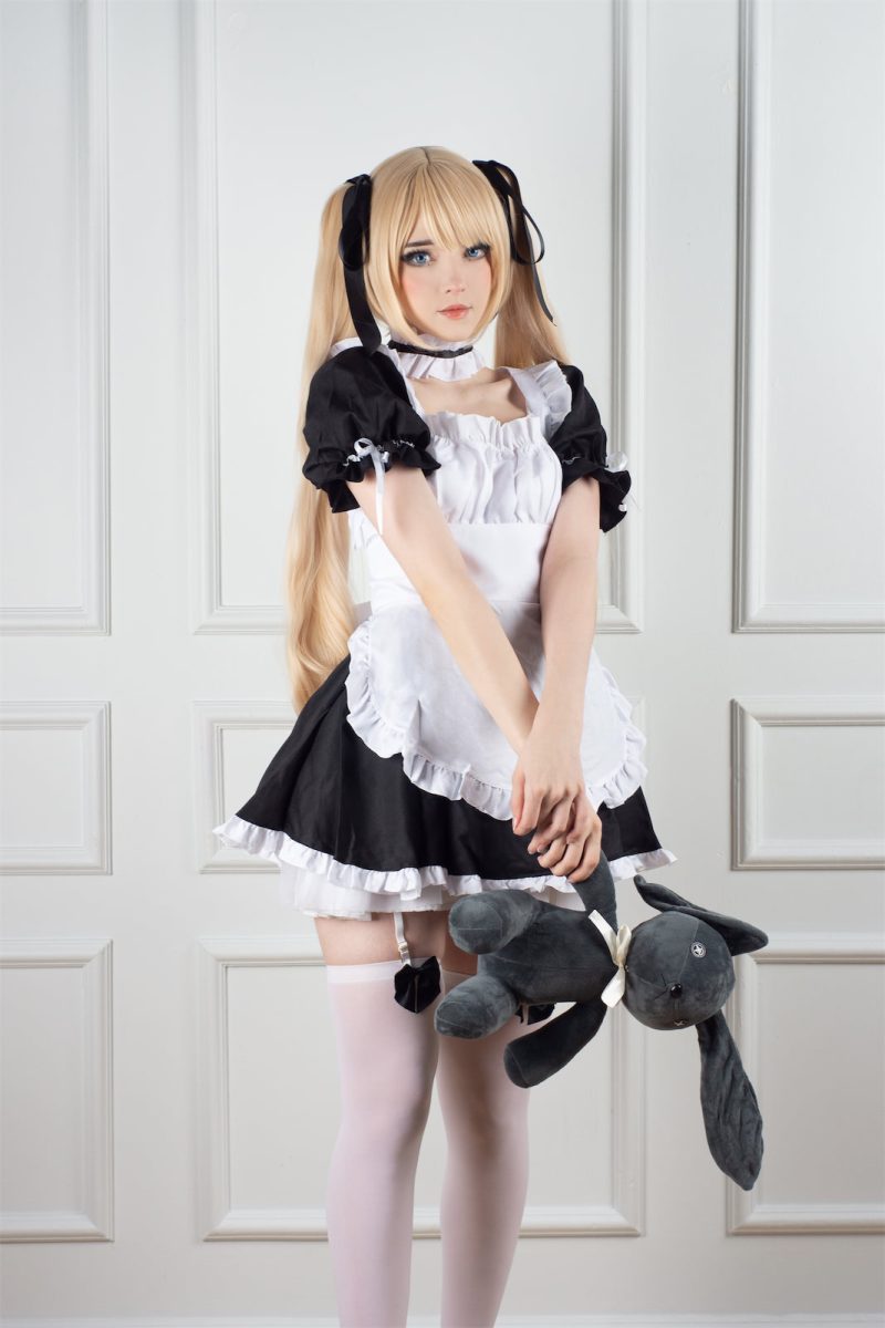 先说说这氛围感——背景是干净的白色欧式墙面,线条利落又温柔,暖调灯光轻轻裹在Candy Ball玛丽罗斯身上,像给她镀了层软乎乎的糖霜,既衬出了女仆装的黑白精致,又没抢角色本身的娇俏感,这光影把控是不是绝到想喊“老师开课”?