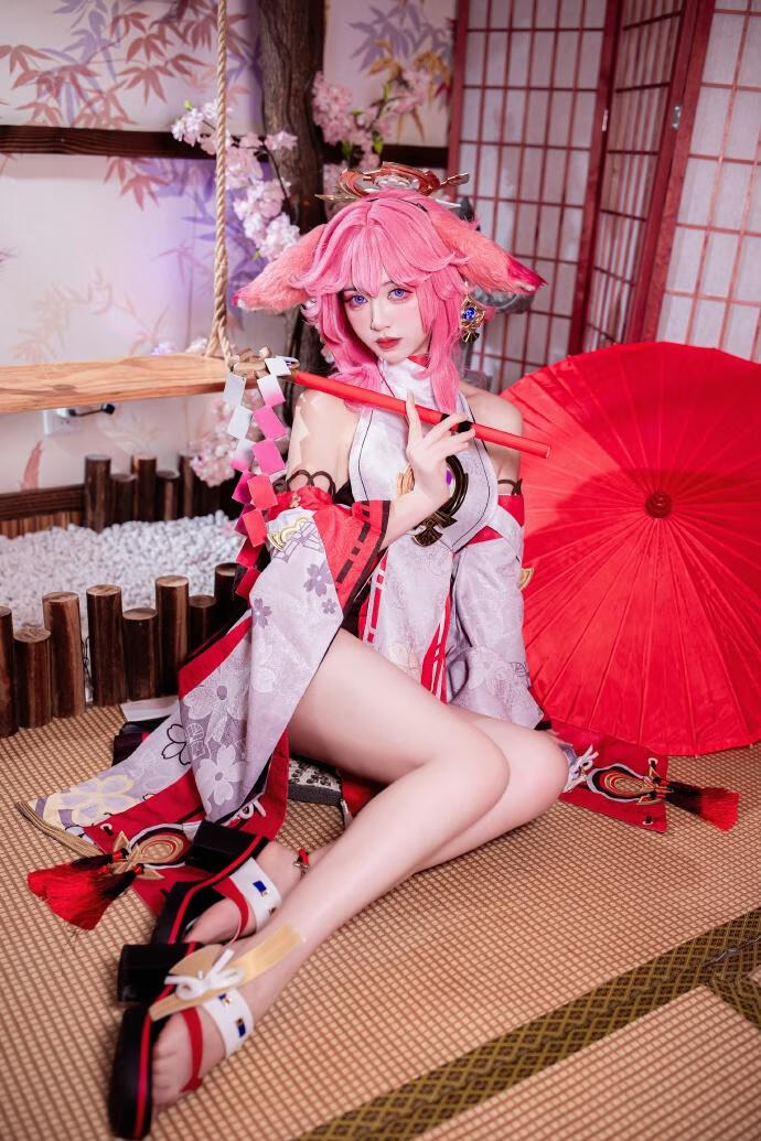 身材更是绝到让人脸红!(//∇//) 红白巫女服的露背设计把纤细肩颈线衬得绝绝子,黑色腰结紧紧收住腰肢,走动时振袖翻飞,露出的美腿又直又细……停!再写下去伊喵喵要害羞到躲起来啦~ 这种“清纯又性感”的反差感,是不是比很多御姐风Coser多了份灵动呀?
