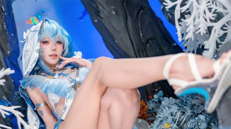 先扒服裝還原,簡直是從遊戲PV里扣出來的!咬一口兔娘穿的這套守岸人新衣,露臍短上衣搭配高腰短裙,銀色鑲邊勾勒出利落線條,腰間的蝴蝶吊墜隨動作輕輕晃動,據說是她手作還原的技能標誌。袖口的半透明紗料帶著細微的珠光,陽光下像海浪反光,剛好呼應黑海岸的設定;腳上的銀色短靴有精緻的扣帶設計,每一步都像踏在潮水上,又颯又仙。最驚喜的是她自帶的音感儀道具,機身的藍色光效是實時點亮的,和遊戲裡的專武外觀一模一樣,據說為了還原這點,她熬了兩個通宵改裝電子元件!