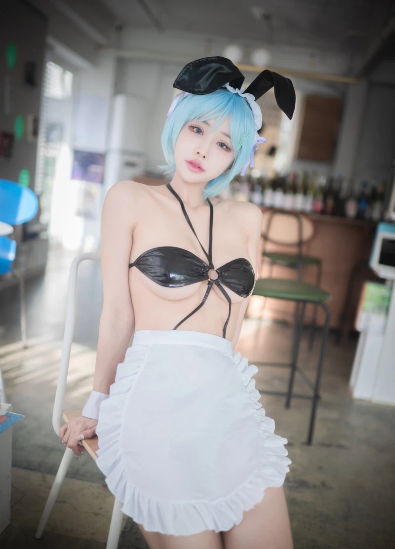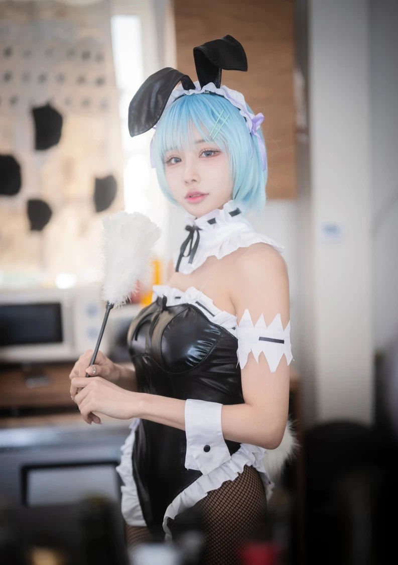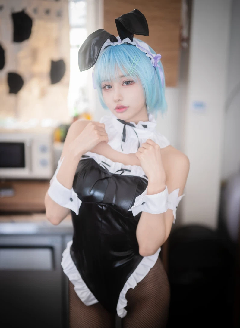 YeonYu (연유)演绎的蕾姆兔女郎,像薄荷冰沙裹了层黑巧缎带——清冷蕾姆的软甜,撞上兔女郎的媚,这反差感直接戳中XP!