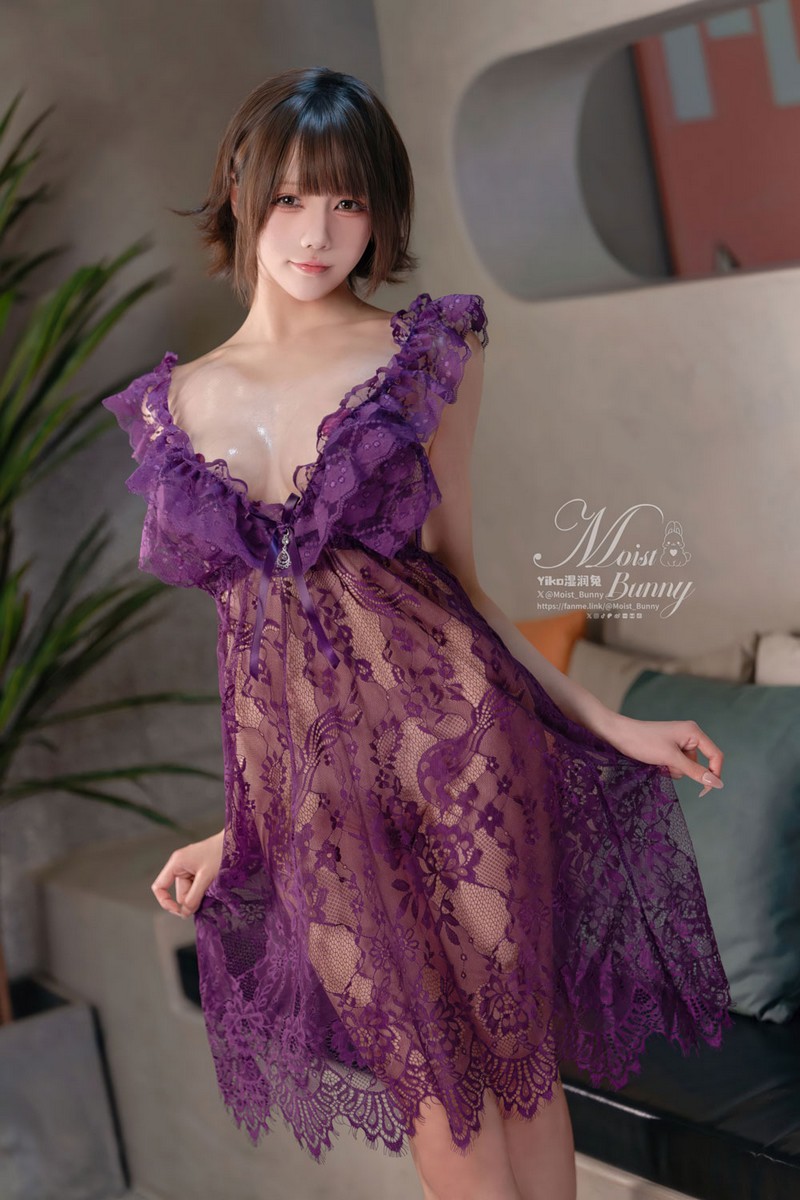 咬一口兔娘(Yiko湿润兔) 这组紫色蕾丝睡裙写真,真的是把慵懒又勾人的氛围感狠狠拿捏了!